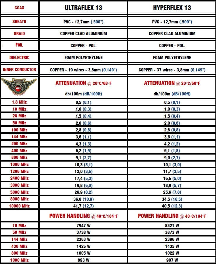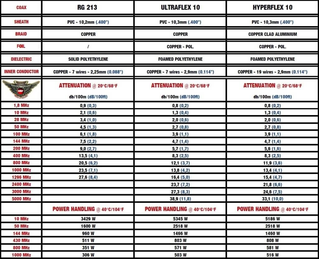 If it’s true that Ultraflex 7 is better than RG213 despite a smaller diameter,  just imagine the difference with ULTRAFLEX 10 and HYPERFLEX 10 which have the same overall diameter of 10,3mm (.400″). The duel in attenuation leaves no room for comparison.