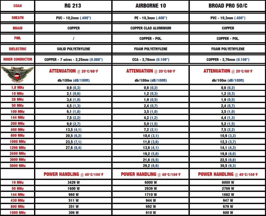 BROAD PRO 50 Competition is a coax entirely made of pure copper, while AIRBORNE 10, made of copper clad aluminium, is 45,3% lighter than an average 10,3mm cable. This makes of Airborne 10 the very best solution for Dx-ers needing the ultimate performance.